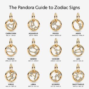 Let the stars guide your look with the Pandora Aquarius Zodiac Dangle Charm. The dangle is crafted our 14k gold-plated unique metal blend, has a circular outer frame and features clear sparkling cubic zirconia as well as the shape of the Aquarius zodiac sign. The back side of the frame is engraved with “Aquarius”. Unique, altruistic and innovative, the Aquarius in your life can always be counted on to bring about change with optimism. Wear this Pandora Moments Dangle Charm as a sign of your own sign’s strength or give it as a gift of appreciation to the Aquarius in your life.