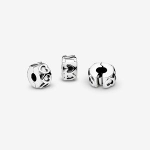 Add meaning to your Pandora Moments bracelet with this hand-finished sterling silver clip charm featuring heart details. A row of romantic hearts channel the look of love and the raised design lends subtle dimension to your charm stack. Wear this hand-finished piece with other sterling silver charms as part of your charm stack or gift it to someone that’s close to your heart. This clip charm features no silicone grip, so it will slide if not styled onto threads (two raised charm dividers).