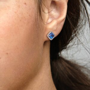 A classic style that will never date, these square stone stud earrings are cast from sterling silver and framed with cubic zirconia for a radiant finish. They’re centered with brilliant blue crystals that catch the light from every angle and add a pop of color to your look. The timeless pair channels a vintage feel. Make them your everyday signature.