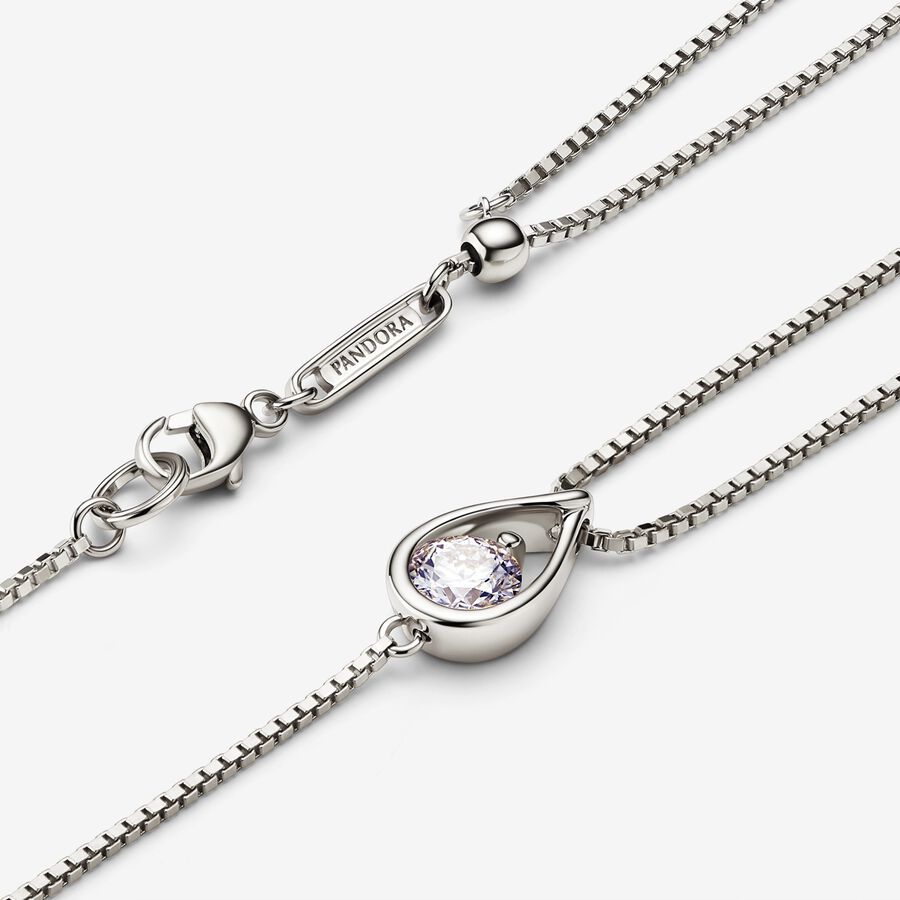 “A radiant 0.50 carat lab-created diamond floats within our unique infinity motif, crafted in 14k white gold, to create an elegant lab-created diamond centerpiece to layer into your everyday looks. The motif is suspended in place on a refined box chain in 14k white gold, which doubles up on one side to add a modern twist to the design. The double chain side leads to a sliding ball closure, allowing you to adjust your bracelet for the perfect fit. Our fluid infinity design symbolizes infinite joy, optimism and strength, making this lab-created diamond bracelet a meaningful addition to your bracelet stack. Pandora Brilliance lab-created diamonds above 0.5 carat are certified by IGI.”