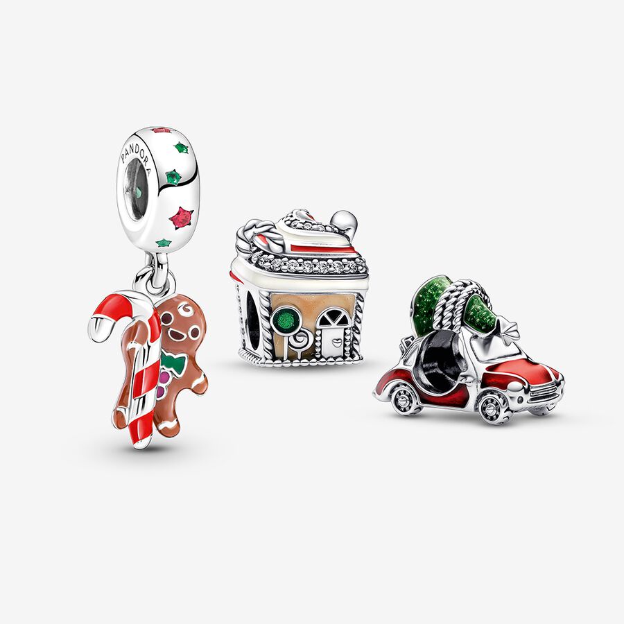 Candy canes, gingerbread houses and Christmas trees – gather the Christmas classics in this iconic charm set. Wear the holiday spirit with the Festive Gingerbread House Charm, Ginger Bread Man with Candy Cane Charm, and Festive Car and Christmas Tree Charm.