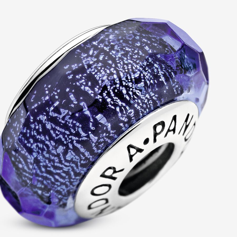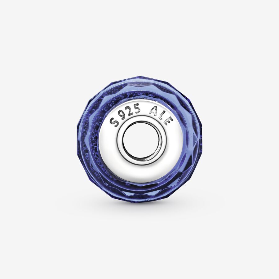 Add some Murano magic to your Pandora charm bracelet with this iridescent blue glass charm. Finished in sterling silver, the glass features a unique, multi-faceted design that shimmers and shines as the light catches its surface. Mix and match with other Murano glass charms and sterling silver charms.