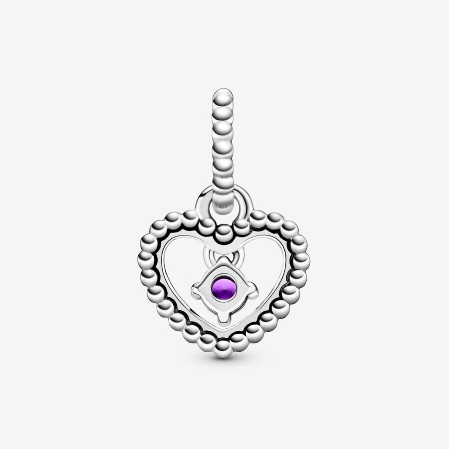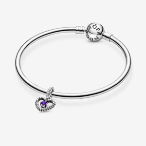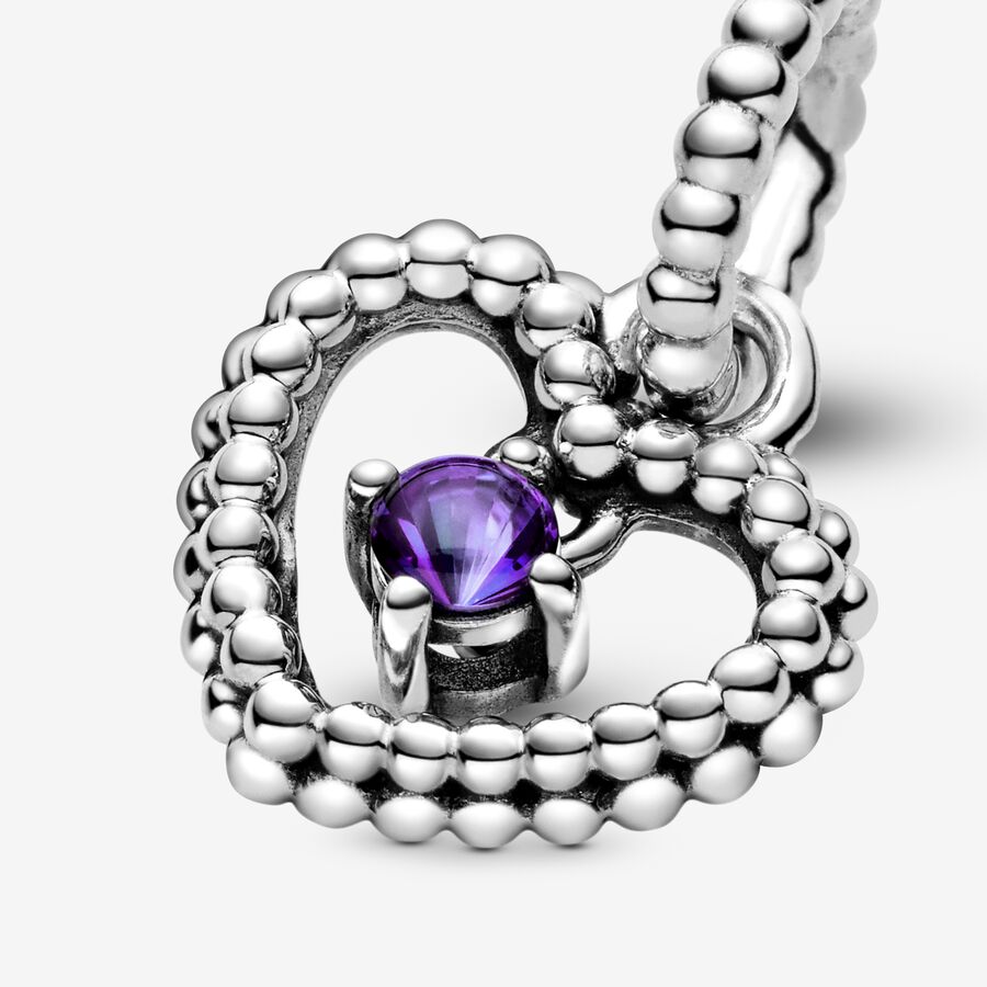 Coloring with crayons or fields of lavender? All that you are and all you love, captured in color. Inspired by the beaded designs of Purely Pandora, this heart-shaped dangle is hand-finished in sterling silver and features a claw-set buff top-cut purple man-made crystal in the center. Wear it on Pandora bracelets or necklaces to define and redefine your style by choosing colors that express who you are.