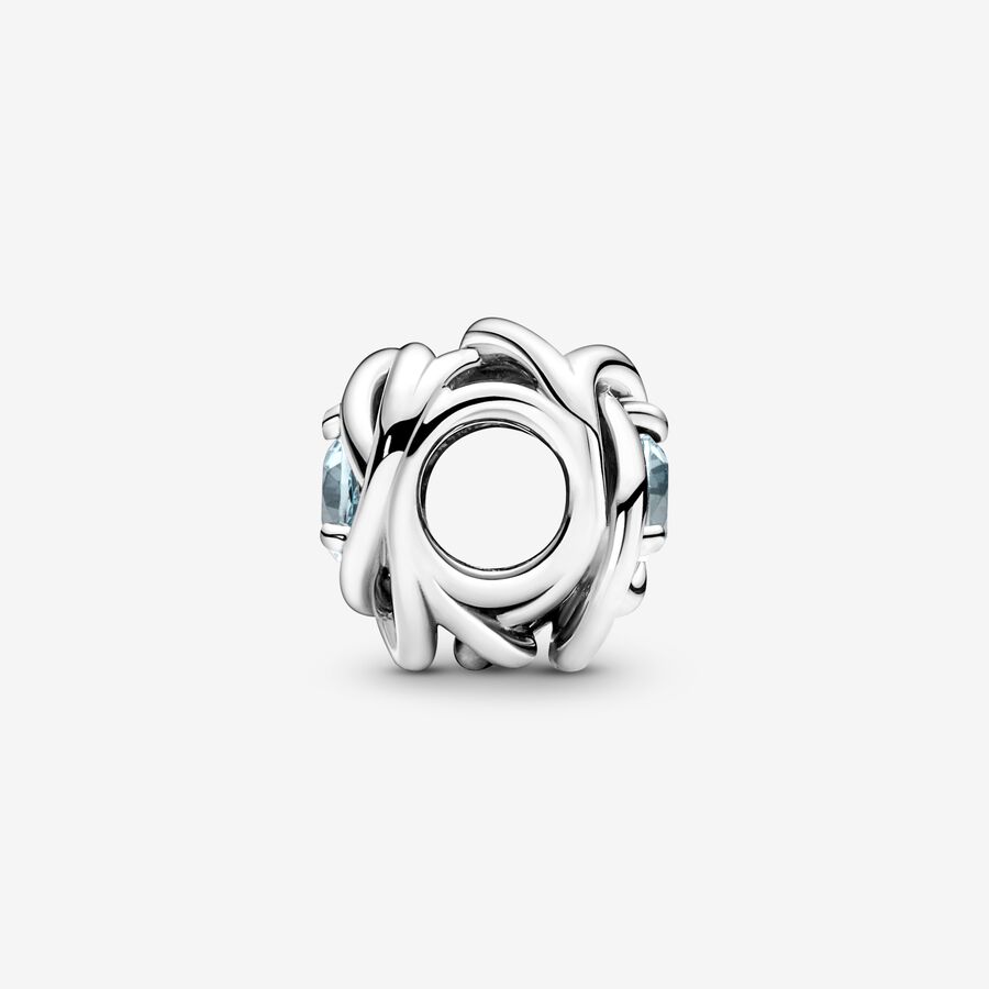 Add a pop of color to your bracelets and pendants with this Sea Aqua Blue Eternity Circle Charm. This special piece is made in the shape of an infinity braid and is set with a aquamarine-colored crystal at its center. Symbolizing eternity, add this sparkling charm to your styling to give your everyday jewelry a bright update.