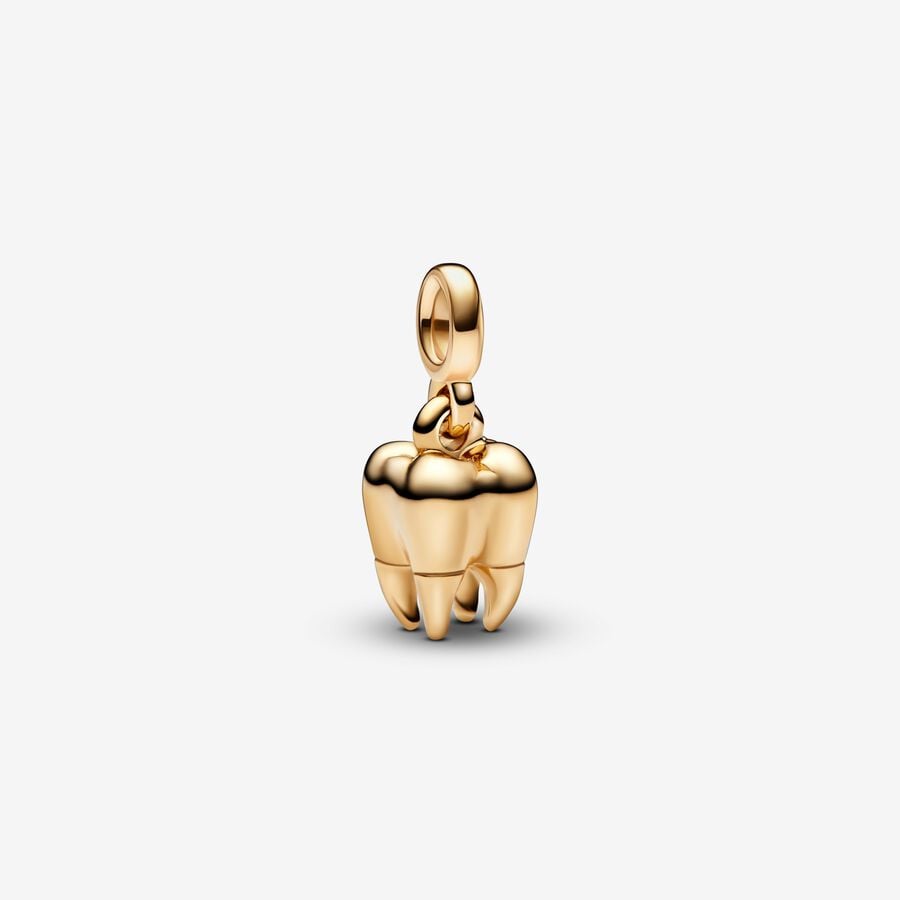 Bite into new styling possibilities with our Pandora ME Tooth Mini Dangle Charm. Hand-finished with 14k gold plating, this Y2K-inspired piece features a realistic tooth design with the word ‘ME’ emblazoned in black enamel. The mini dangle charm can be styled on Pandora ME openable link across link chain bracelets, necklaces, rings and hoops. Wear it with your favorite jewelry and add an instant edge to your looks.