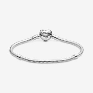 Keep the people that you love close to you with the family tree snake chain bracelet. Featuring an openwork clasp design and sparkling cubic zirconia, the heart-shaped family tree Pandora Moments bracelet represents the ties that make you who you are and keep you grounded. On the back of the clasp, a family script with leaf detail highlights the importance of lasting family bonds. Wear as a tribute to your family or gift to one of your nearest and dearest.
