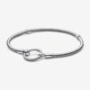 Bring timeless charm to your look with the Pandora Moments Halo Snake Chain Bracelet. Hand-finished in sterling silver, the bracelet’s clasp features a large sparkling clear cubic zirconia center stone surrounded by a double halo set with small stones, designed to create a spacious, free-floating look. Fill the bracelet with charms and clips, wear it on its own for a simply elegant look, or stack it with contrasting bracelets for a fun play on textures.
