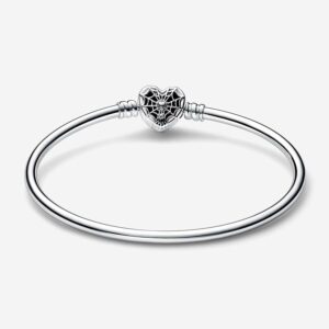 Gather your ultimate team of heroes with our Pandora Moments Marvel Spider-Man Mask Clasp Bangle. Collect all of the Spider-Man charms and style them on this sterling silver bangle with Spider-Man’s mask at the center. The stylized heart clasp features bright enamel details to recreate the characteristic mask, while the bangle is engraved with the iconic quote “With great power comes great responsibility”. Style yours with up to 18 charms, dangle charms or pendants and let your strengths shine.