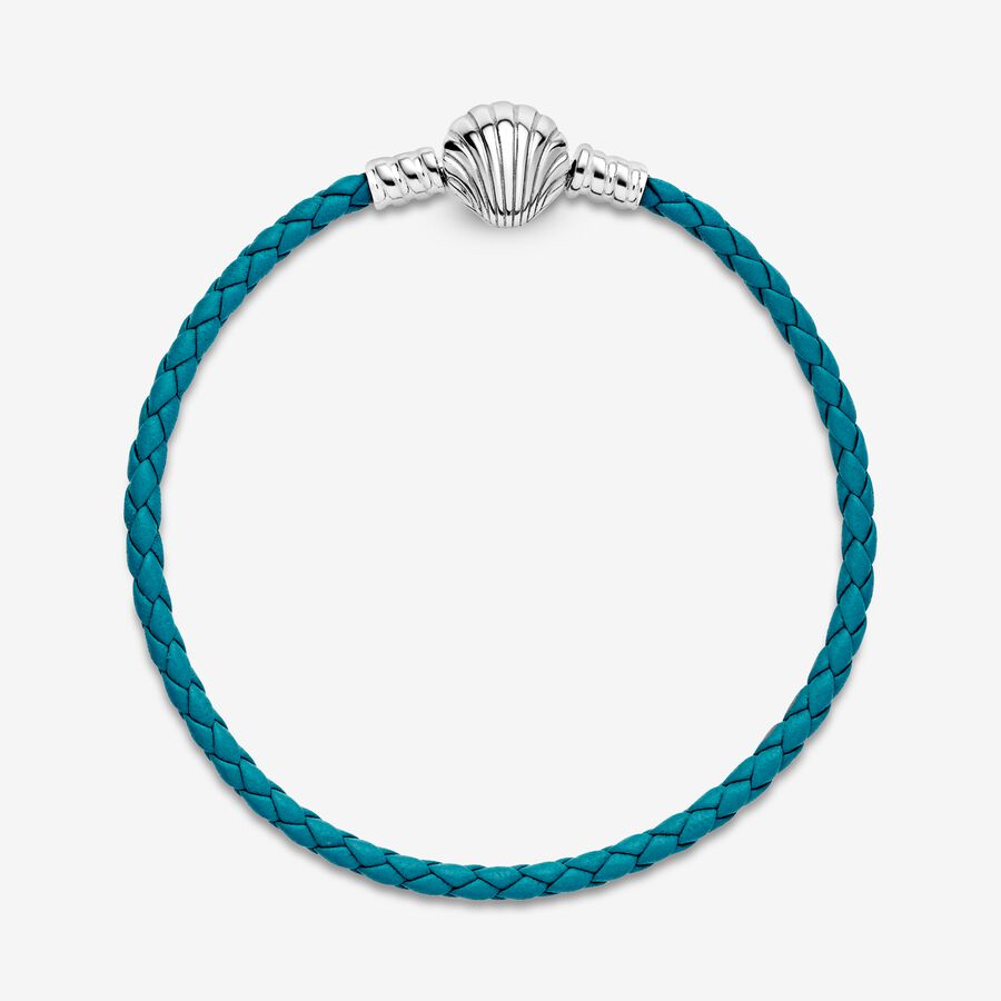 Add a pop of vibrant color to any of your outfits with the Moments Seashell Clasp Turquoise Braided Leather Bracelet. The turquoise leather’s intricate braid finishes in a sterling silver shell-shaped clasp that is inspired by the treasures of the deep and the colorful ropes used on sailboats. Wear it by itself for a splash of color or add ocean-themed Moments charms to customize your look.