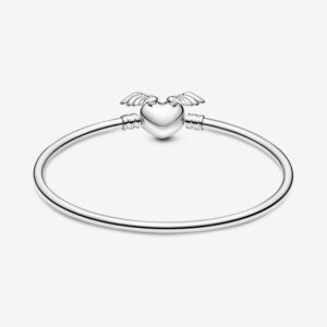 Present your loved one with the Pandora Moments Winged Heart Bangle. Hand-finished in sterling silver, this design features a heart-shaped clasp. The engraving on the front reads “Always by your side” with a small indented heart beneath it. Two moving angel wings feature on the back of the clasp. Gift this piece to your family member alongside a pair of heart-shaped sterling silver earrings to make them feel extra special.