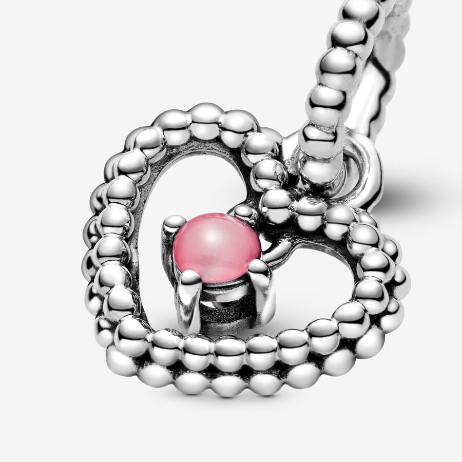 Like fluffy fairy floss or a flock of flamingos? All that you are and all you love, captured in color. Inspired by the beaded designs of Purely Pandora, this heart-shaped dangle is hand-finished in sterling silver and features a claw-set buff top-cut petal pink man-made crystal in the center. Wear it on Pandora bracelets or necklaces to define and redefine your style by choosing colors that express who you are.