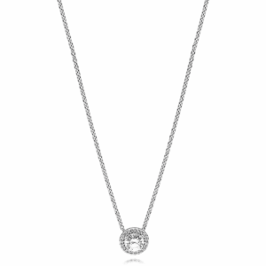 Radiating timeless elegance, this gorgeous halo necklace with cubic zirconia will make any neckline look dazzling with its chic details and subtle finishing touches.