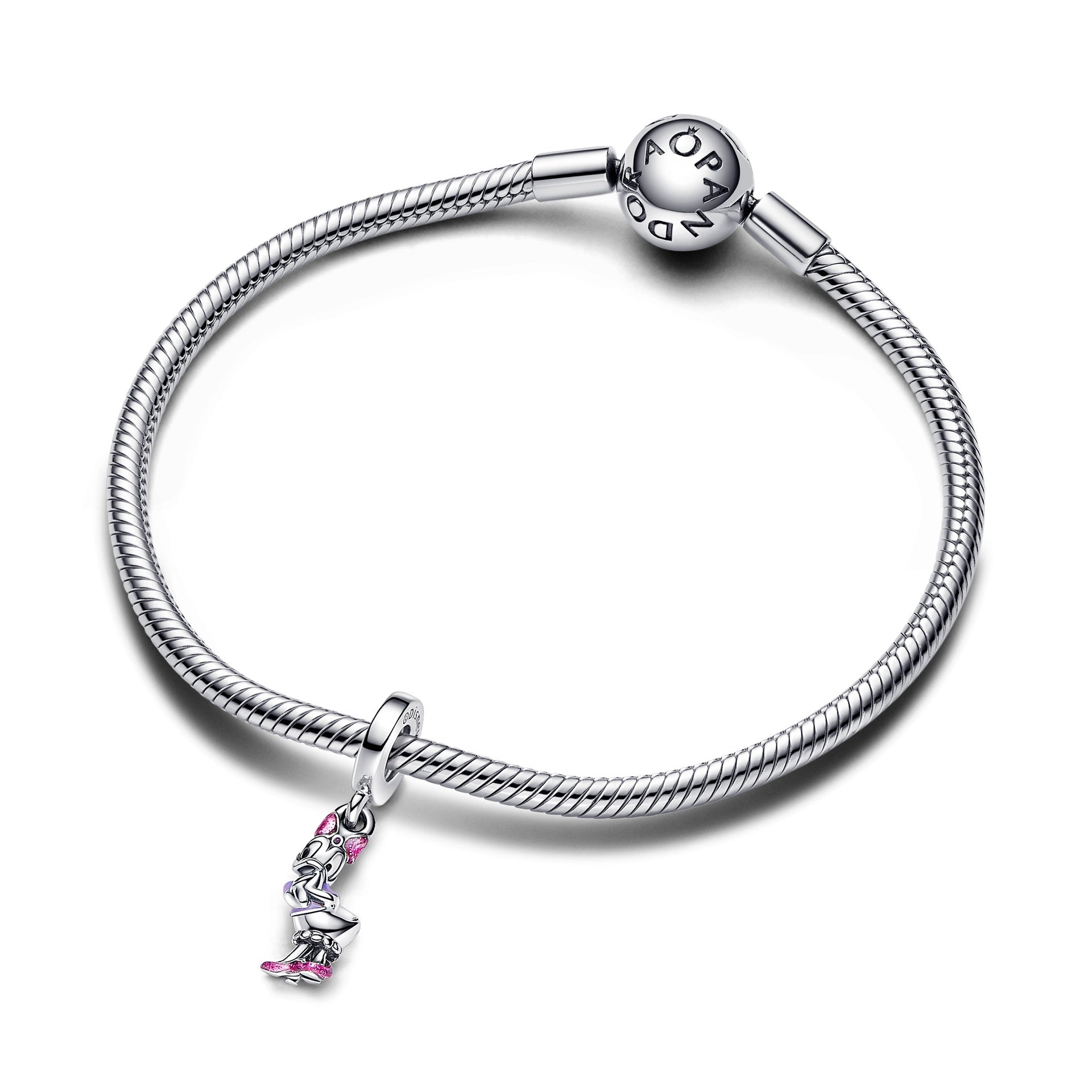 Lean into your playful side when you wear the Disney Daisy Duck Dangle Charm. An intricate depiction of Disney’s Daisy Duck character, this sterling silver charm pops with colorful enamel and grooved detailing. As Donald Duck’s charismatic counterpart, Daisy Duck is a beloved character in the Disney universe and in this charm she’s all smiles and style. Pair this piece with other sterling silver ones and it will stand out as an eye-catching accent.