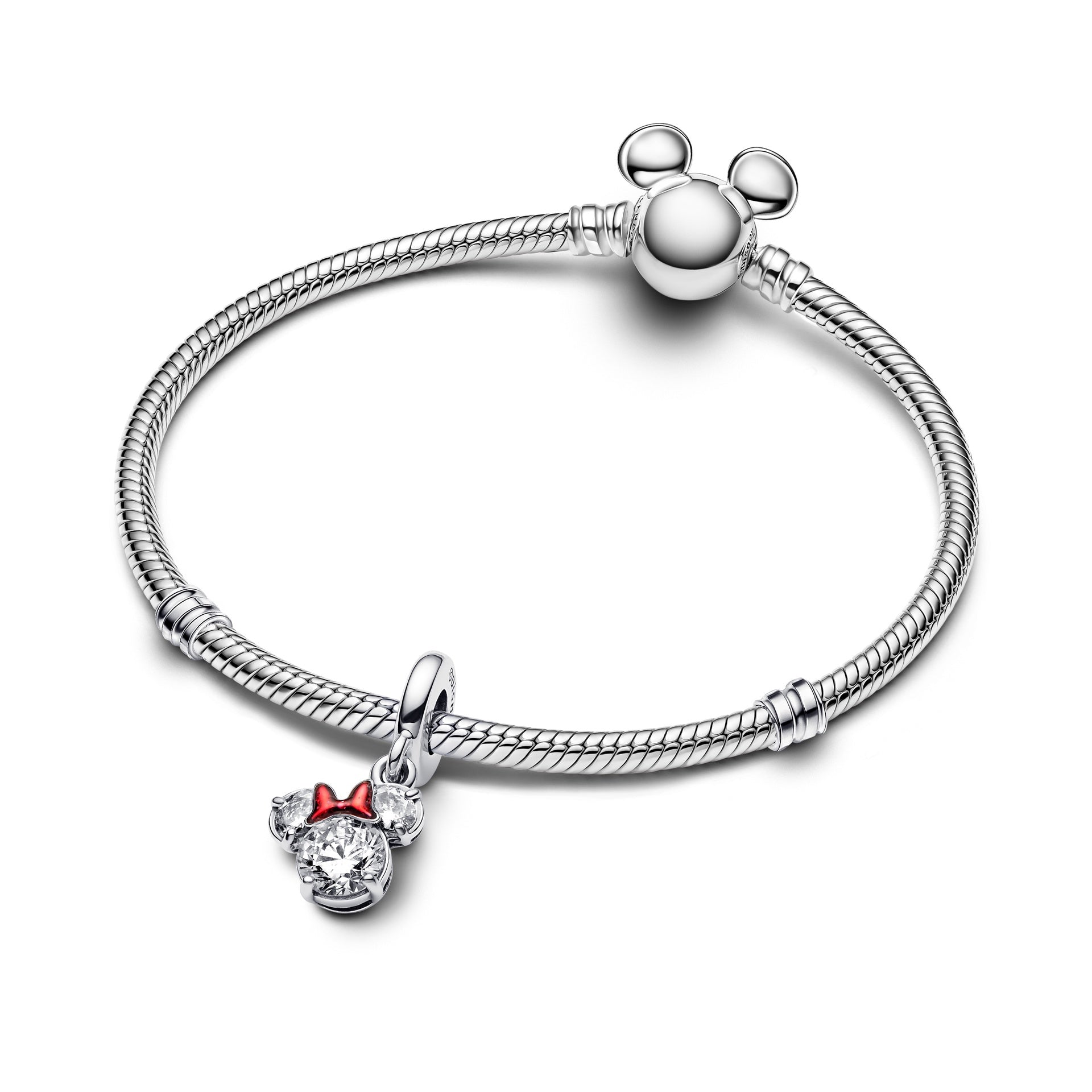 Add a touch of Disney magic to your collection with our Disney Minnie Mouse Silhouette Dangle Charm. Featuring three sparkling stones arranged in Minnie Mouse’s silhouette and her iconic red bow in glittery enamel, this sterling silver charm is the perfect holiday gift for yourself or someone special.