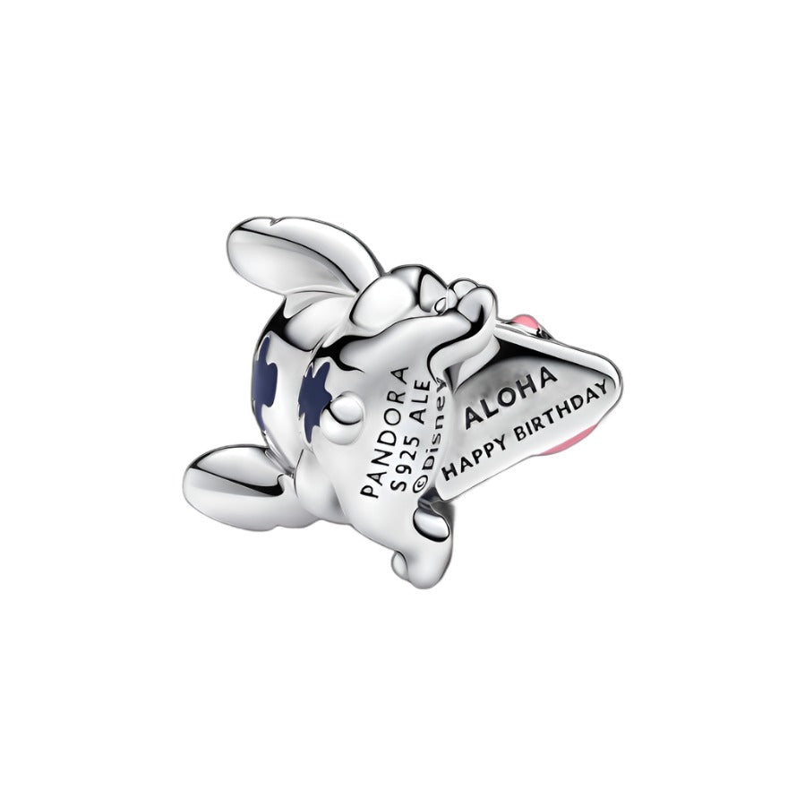 Celebrate a special moment with the Disney Stitch Birthday Cake Charm, a fun addition to your charm collection. Crafted in sterling silver, Disney’s Stitch sits playfully behind a cake, capturing the essence of special occasions. Intricate hand-applied enamel details bring the mischievous character to life, from his animated eyes to the drips of color on the cake. The engraving “ALOHA HAPPY BIRTHDAY” adds a festive touch. With every detail, this Stitch Pandora charm is a whimsical tribute to the magic of birthdays and the loveable Stitch.
