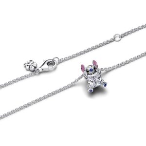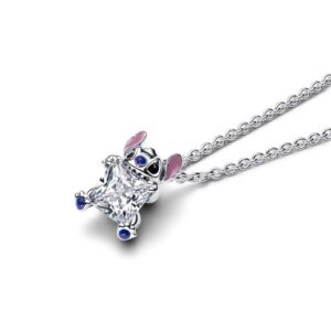 Add a touch of Disney magic to your day with the Disney’s Stitch Collier Necklace, featuring a clear cubic zirconia and vibrant enamel details in valerian purple, transparent dark purple, black, and estate blue, all set in a beautifully crafted 14k gold plated chain.
