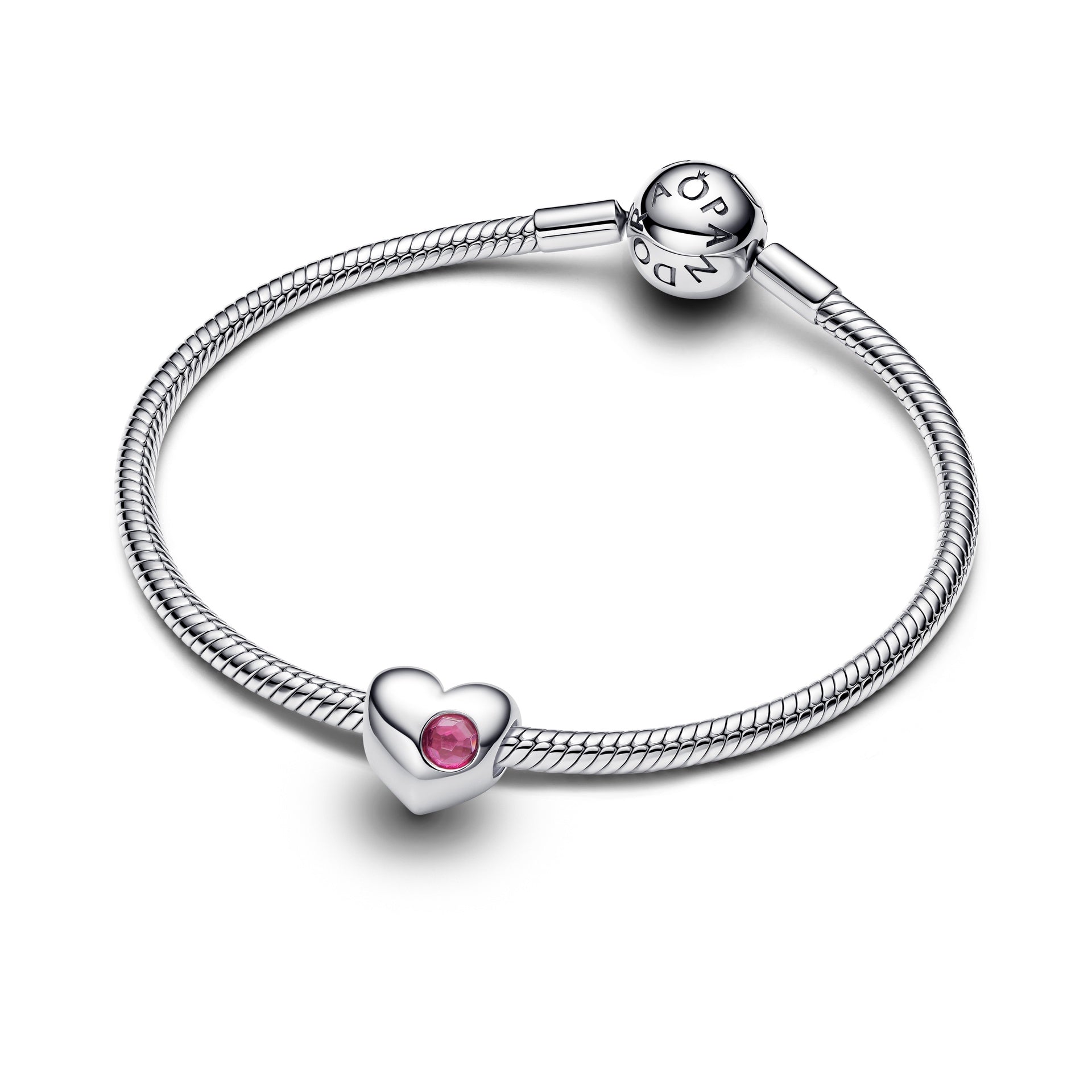 Engrave a message of love. Our sterling silver heart charm with a flush-set pink man-made crystal is the perfect canvas for a personal note or meaningful memento.