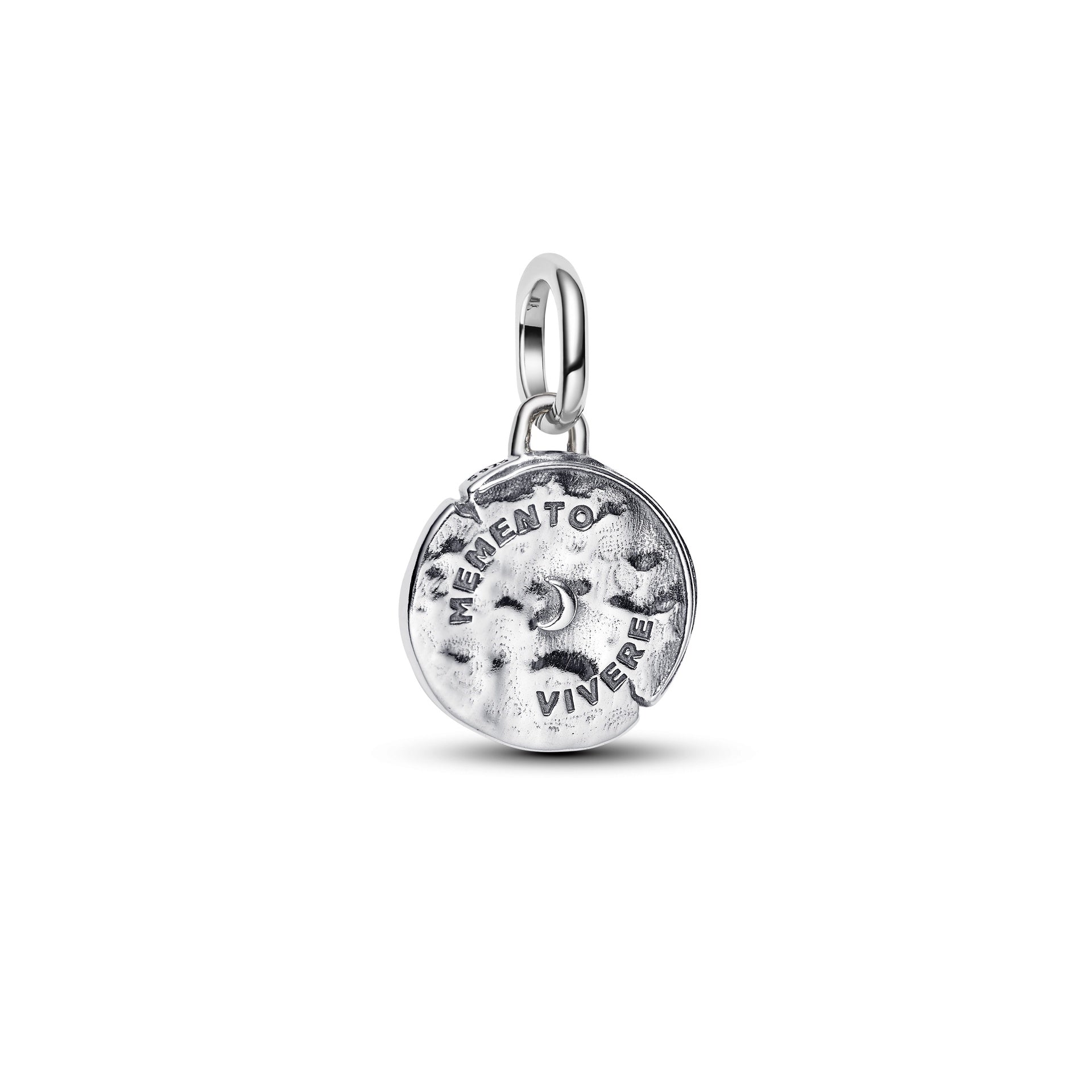 A symbol of renewal, coiled in sterling silver. Inspired by ancient coins, this powerful medallion features a flush-set clear cubic zirconia and is engraved with ‘MEMENTO VIVERE’ — Latin for ‘REMEMBER TO LIVE’.