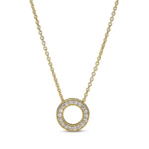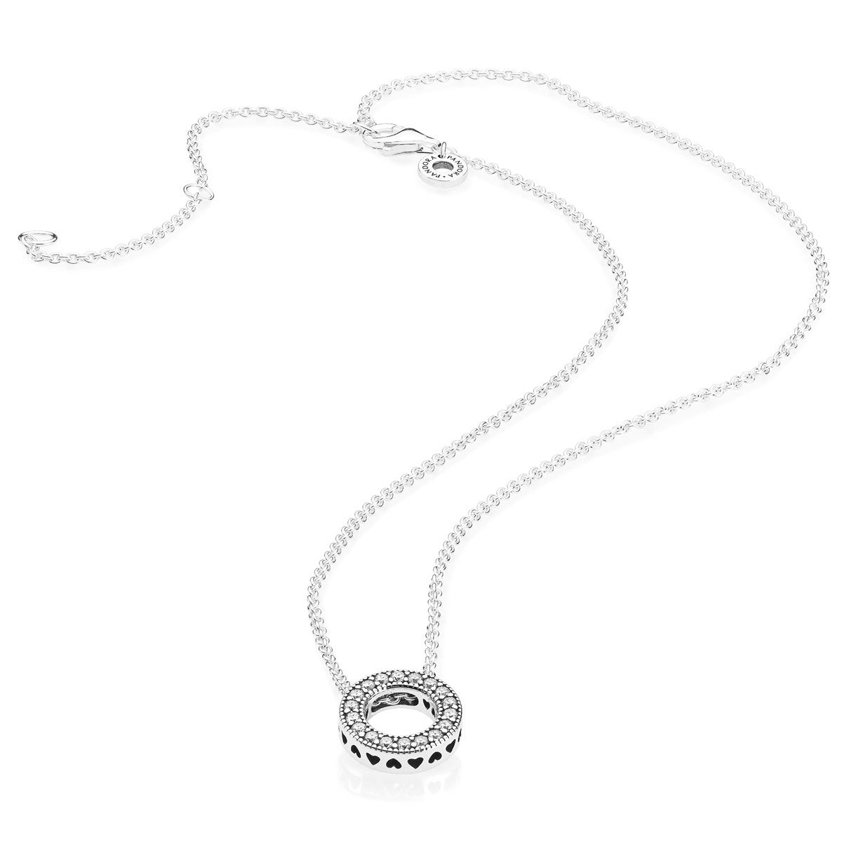 This versatile necklace collier features a PANDORA logo on one side and a circle of shimmering stones on the other. Comprising two looks in one, it’s the perfect addition to your everyday outfits and partyready ensembles.
