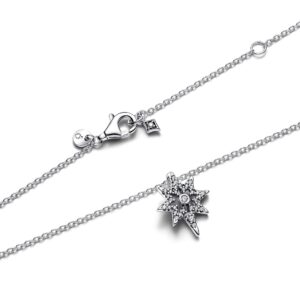 Light up your look with our North Star Pendant Necklace in sterling silver. Featuring the symbolic design of the Polaris shining with clear cubic zirconia from a classic cable chain, this necklace adds a celestial glow to your look with a layer of meaningful symbolism. The chain can be adjusted three different lengths to suit your style. Serving as a compass in uncertain times, the North Star guides us to brighter tomorrows and represents our hopes and dreams. Wear to add sparkle to any festive look or gift it to the shining star of your life.