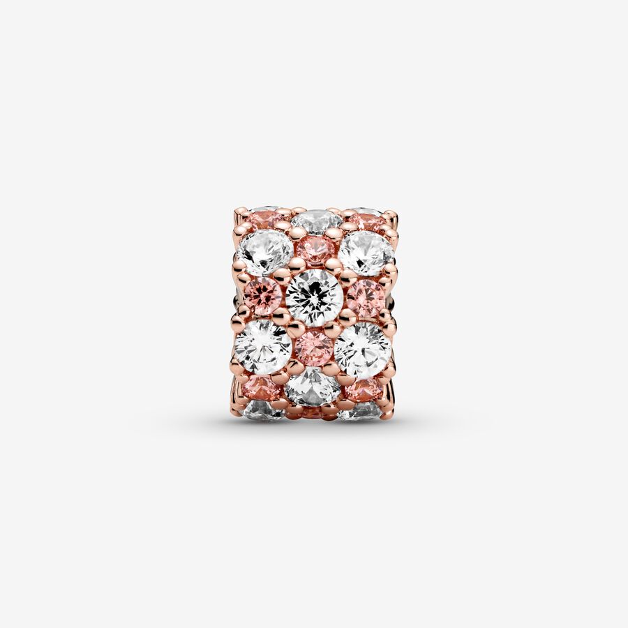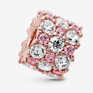 Sparkle in style with this shimmering Pink & Clear Sparkle Charm. Hand-finished in 14k rose gold plating, this piece adds pizzazz to your charm collection with its fancy fairy tale pink and clear cubic zirconia set in alternating sizes. Thread the charm on your favourite Pandora Moments bracelet, give it pride of place on the Pandora O Pendant or gift it to someone that lights up your days.