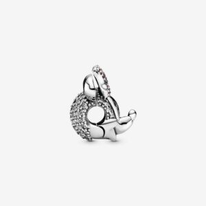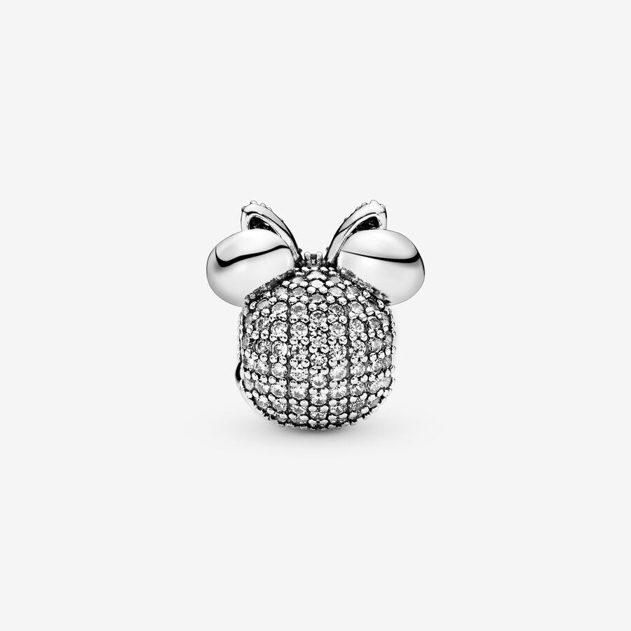 Not only a mouse, but also a fashionista, makes her mark on this glittering sterling silver charm. Her signature bow dazzles in cubic zirconia, lending a pop of pink to your styling, and her radiant smile is sure to light up any look. Add the style icon to a Pandora Moments bracelet for a sweet and sentimental touch or gift it to someone you know will love it. This clip charm features no silicone grip, so it will slide if not styled onto threads (two raised charm dividers).