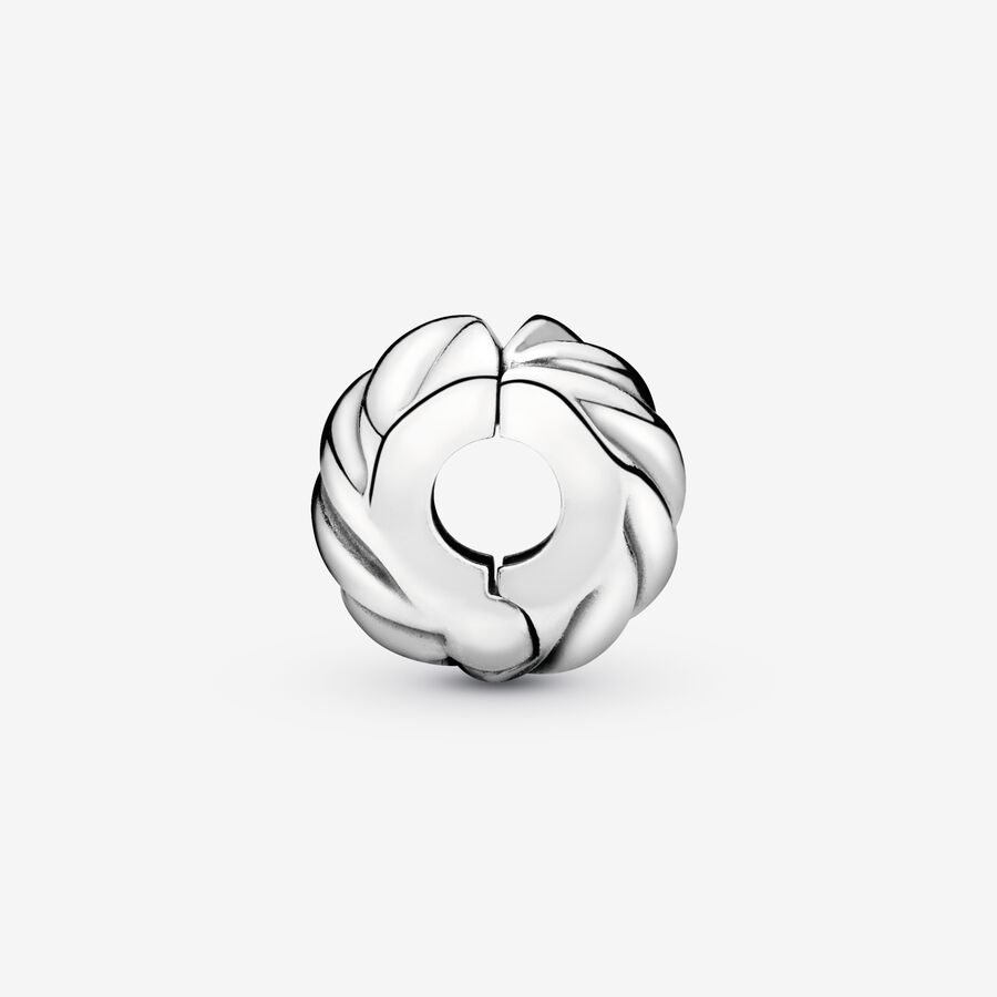 Add subtle texture to your Pandora Moments bracelet with this sterling silver clip charm, decorated with curved lines that resemble the delicate structure of feathers. Polished to a high shine, the minimalist Pandora clip is ideal for keeping the charms on your bracelet safe and preventing them from sliding freely. Wear it with other sterling silver charms or style with contrasting metals to channel the feeling of freedom the feather represents. This clip charm features no silicone grip, so it will slide if not styled onto threads (two raised charm dividers).