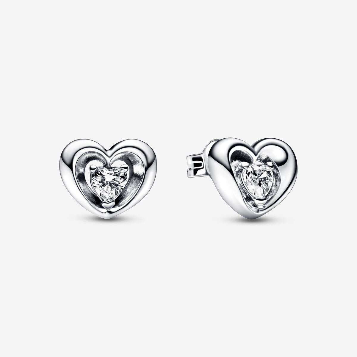 What the heart wants. Inspired by the joining of two hands to form a heart gesture, our Radiant Heart & Floating Stone Stud Earrings make a sweet statement about the power of love. Hand-finished in sterling silver, each 3D open heart is set with a heart-shaped clear cubic zirconia at its centre. Gift them to the one who completes you.