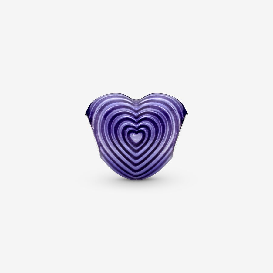 Add a pop of color to Mom’s bracelet with the Radiating Love Mum Heart Charm. This retro-looking piece features hand-applied transparent purple enamel on sterling silver to create the effect of expanding heart outlines. A symbol of Mom’s radiating love.