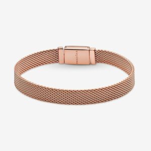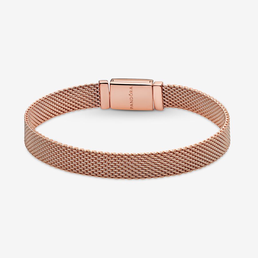 Add some sparkle to your look with the Pandora Reflexions Long Clasp Pavé Bracelet. Featuring an elongated clasp shape with diagonal rows of clear cubic zirconia pavé on the front and a polished back with Pandora logo, this 14k rose gold-plated fine flat mesh bracelet is hand-finished. Designed in the modern minimalist aesthetic of Pandora Reflexions, this warm-toned bracelet is a sleek, stunning and sophisticated addition to any look.