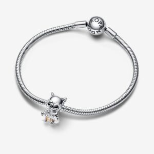 Our Marvel Guardians of the Galaxy Rocket Raccoon Charm. An expert pilot and marksman, Rocket poses with his Laser Cannon and Aero-Rigs jetpack. He is crafted in sterling silver with hand-applied enamel detailing to accentuate his jumpsuit and grumpy demeanor. His tail, lined with grooves to give it a fur-like look, curls around his body. Engraved with “NOTHING LIKE ME ‘CEPT ME” on the back of his head, wear this charm as a reminder to always be proud of who you are.