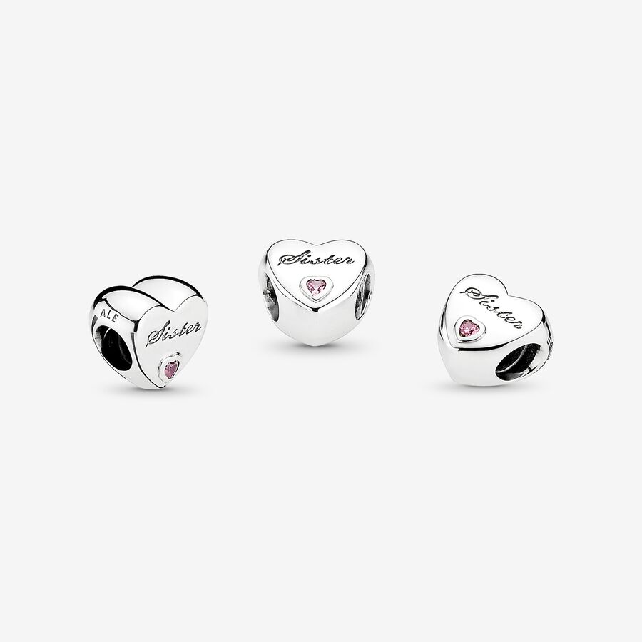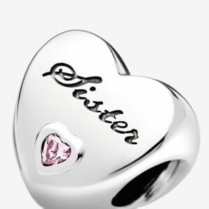 Pandora Moments charms are made for you to express the things you love – something, somewhere or someone. Made to celebrate the bond between siblings, our sterling silver family charm is shaped as a heart. Polished to a high shine, the simple yet meaningful style is trimmed with heart-shaped pink stones and the engraving “Sister.” We think it makes a meaningful gift to show the story you share.