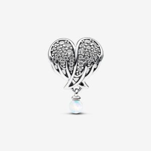 Honor your angels with the Sparkling Angel Wings & Heart Charm. Designed to uplift and inspire, this sparkling addition to the Pandora Moments collection is set with 68 round brilliant-cut clear cubic zirconia stones. A memorable addition to your sterling silver charms, this charm is made even more special with a white lab-created opal dangling from the heart-shaped set of wings. A touching tribute to all the angels who watch over us.