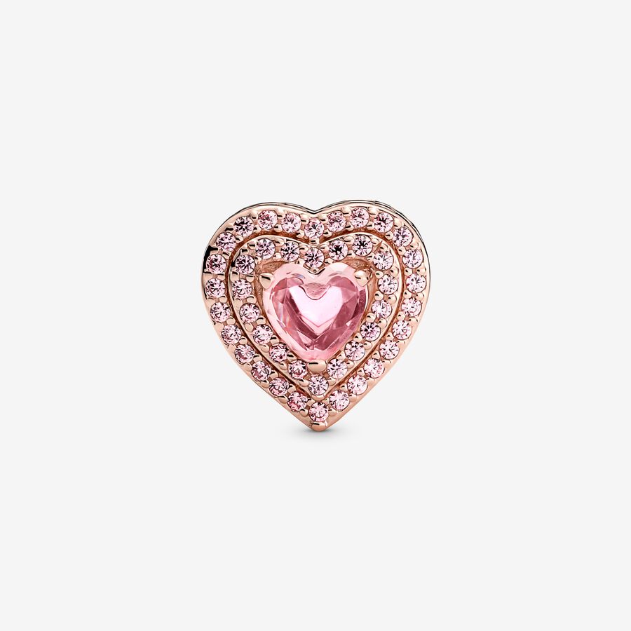Spread the love with the Sparkling Leveled Hearts Charm. Hand-finished in our 14k rose gold-plated unique metal blend, this charm features a central elevated heart-shaped orchid pink man-made crystal outlined by two halos of pink cubic zirconia. A cut-out heart pattern features on the sides. Make a sparkling tribute to love and add a romantic touch to any outfit with this stunning charm. Gift this heart charm to someone special to show how much you care.