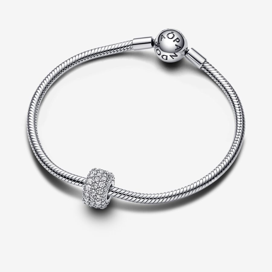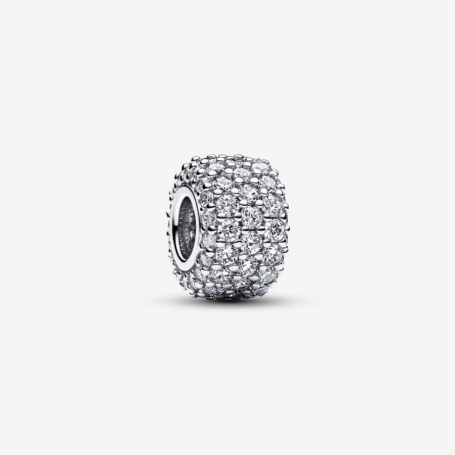Shine on from every angle with the Sparkling Pavé Triple-row Charm. Crafted from exactly 85 pavé-set round brilliant-cut clear cubic zirconia, this sterling silver charm from our Moments collection delivers a touch of shine to any ensemble. An elegant pavé charm that is sure to lend a dash of elevated sparkle to the everyday.Compatible WithMomentsStoneCubic ZirconiaColourClearThemesSparkleProduct TypeCharmsItem792820C01MetalSterling silverMaterialNo Other MaterialDimensionsDepth:11.1 mmHeight:11.1 mmWidth:6.9 mm