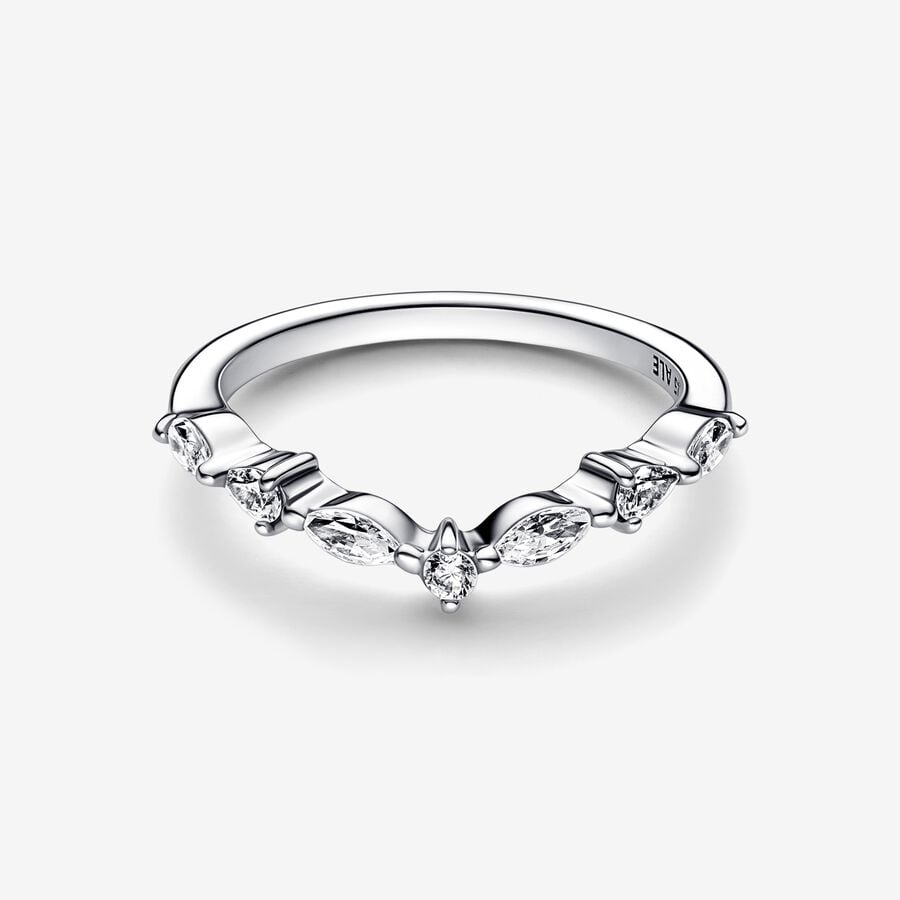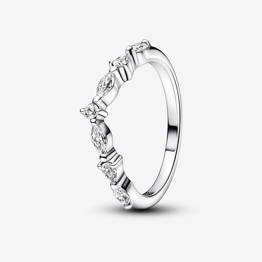 Make eye-catching statements with your everyday jewelry, with our Timeless Wish Sparkling Alternating Ring, a modern interpretation of classic ring styles. Crafted from polished sterling silver, the ring band is set to sparkle with a row of cubic zirconia in round, marquise and pear-shaped cuts. Wear yours as a single piece or layer with more sparkling Timeless rings for a modern approach to stacking that will bring timeless elegance to every look.StoneCubic ZirconiaColourClearThemesWishProduct TypeRingsItem192390C01MetalSterling silverMaterialNo Other MaterialDimensionsDepth:3.4 mmHeight:5.3 mm