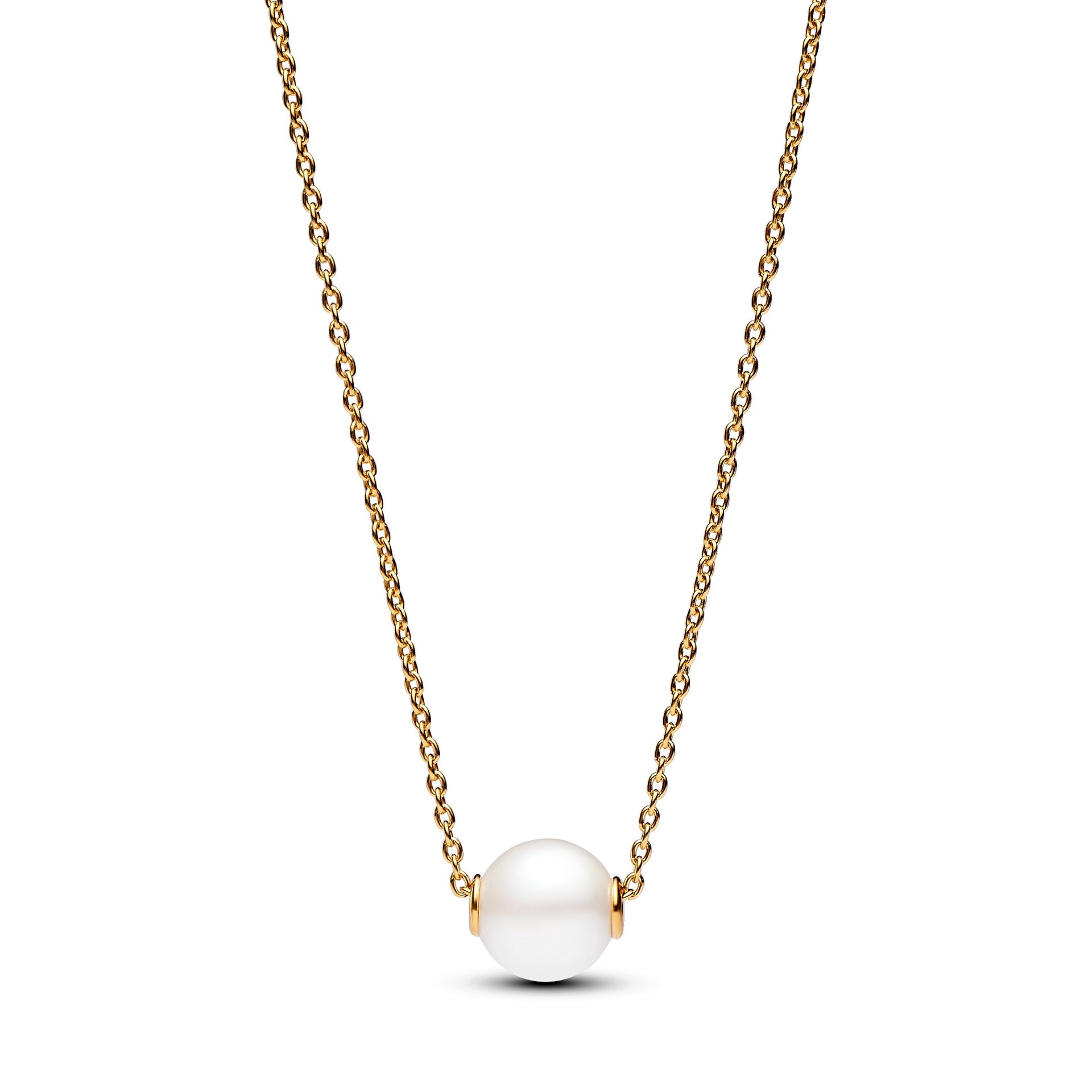 Elevate your style with our Treated Freshwater Cultured Pearl Collier Necklace from our Pandora Timeless collection. This 14k gold-plated or sterling silver piece features an adjustable cable chain with a luminous treated freshwater cultured pearl pendant. A clear cubic zirconia by the clasp adds a touch of sparkle. This necklace represents the fusion of classic and contemporary, making it a perfect choice for both casual and special occasions. Please note that each treated freshwater cultured pearl is unique and can vary in size and colour; normal wear and tear may occur with this material. Our freshwater cultured pearls are treated with bleaching and lustre enhancement.