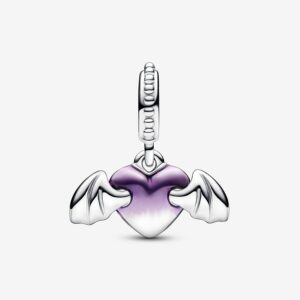 Dial up the scare factor and get into the spirit of your favorite holiday with our Vampire Winged Heart Dangle Charm. This fun charm is decorated with transparent shaded enamel, which creates a gradient from silver to purple color across the heart. Polished sterling silver wings with grooved detailing add a spooky element to the design, along with an etched smile with fangs on the charm’s front. Add this delightfully scary symbol to your charm holders to get into the spirit of the spookiest time of year.